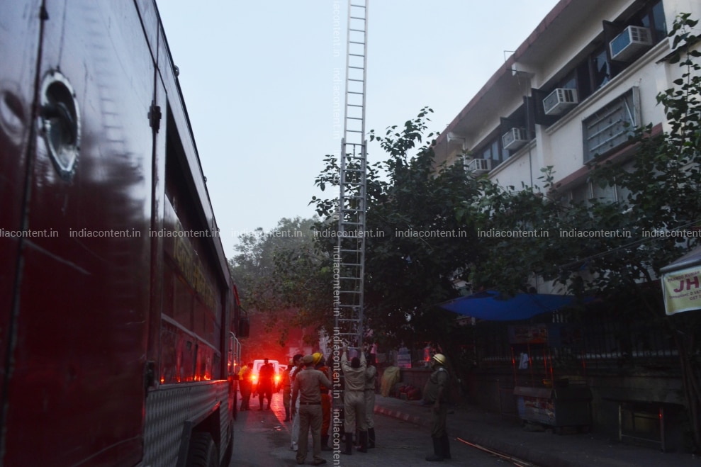 NEW DELHI INDIA AUGUST 27 Shot of firefighters while controlling the blaze after fire report at Vikas Bhawan in New Delhi. Photo by K Asif India Today Group