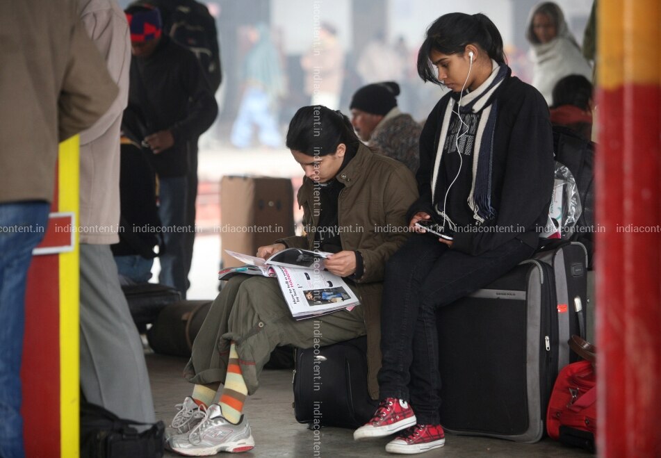 NEW DELHI INDIA - DECEMBER 26 Passengers stranded at the New Delhi Railway station wait for further communication after several trains were either delayed or cancelled due to heavy fog in New Delhi on December 26 2010. Photo by Qamar Sibtain India Today Group