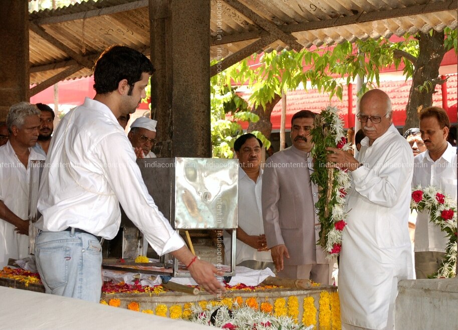 Rahul Mahajan with LK Advani at Pramod Mahajan's Funeral in Mumbai Maharashtra India