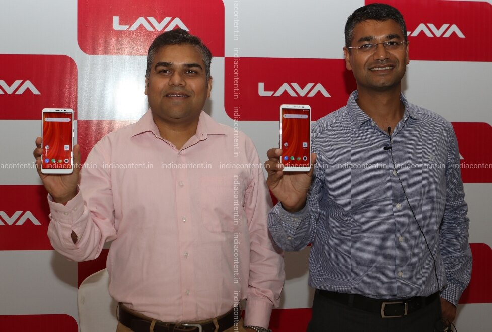 Gaurav Nigam right head product LAVA international along with Vikas Punia nationa sales head LAVA during the launch of the LAVA Z61 smart phone in Chennai on Tuesday July 24 2018. Photo by Jaison G