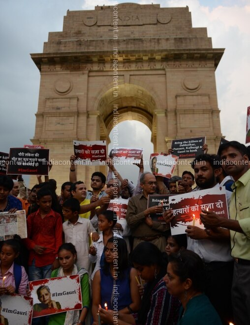 NEW DELHI INDIA SEPTEMBER 06 Activists participate IN a candle light march AGAINST the killing of senior journalist Gauri Lankesh AT India gate IN NEW Delhi. Photo BY Parveen Negi India Today GROUP
