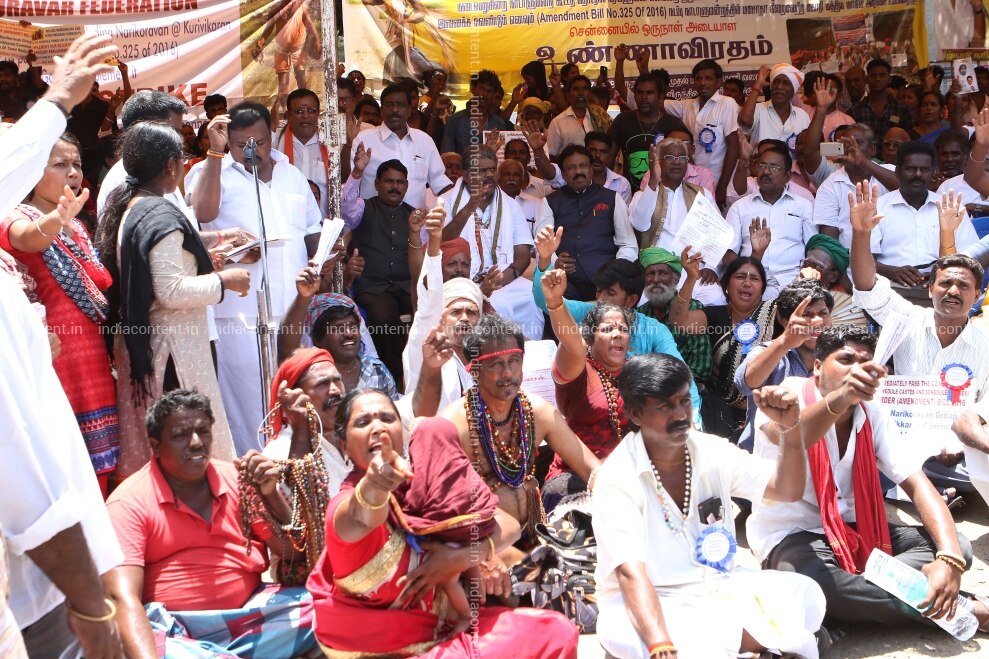 Tamil Manila Congress leader and former central minister GK Vasan at a hunger strike organised by tribals belonging to Narikkurava community of Tamil Nadu demanding the inclusion of them in the ST category in Chennai on Wednesday July 25 2018. Photo by Jaison G