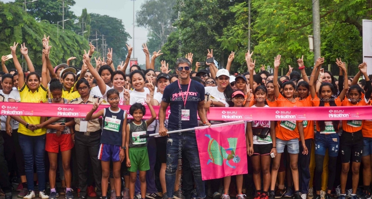 Guwahati Actor Milind Soman flags off Pinkathon 2018 organised to spread awareness about Breast Cancer in Guwahati on Sept 30 2018. Photo IANS