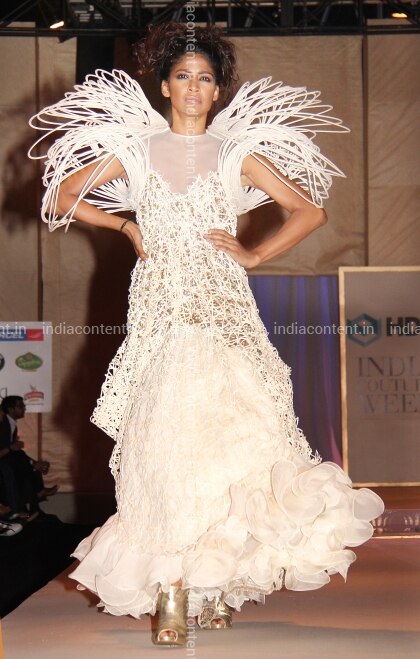 MUMBAI INDIA OCTOBER 8 Carol Gracias walks the ramp at the third day of the HDIL Couture week in Mumbai on October 8 2010. Photo by Yogen Shah India Today Group Carol Gracias