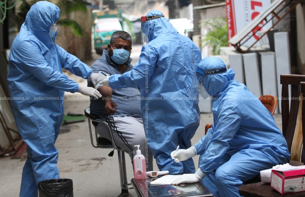 NEW DELHI INDIA MAY 13 Health staff workers test people for COVID 19 at Olive Hotel in New Delhi. Photo by Qamar Sibtain India Today Group