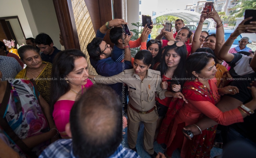 Bollywood actor and BJP candidate Hema Malini during door to door campaigns on April 01 2019 in Mathura. Photo by Maneesh Agnihotri