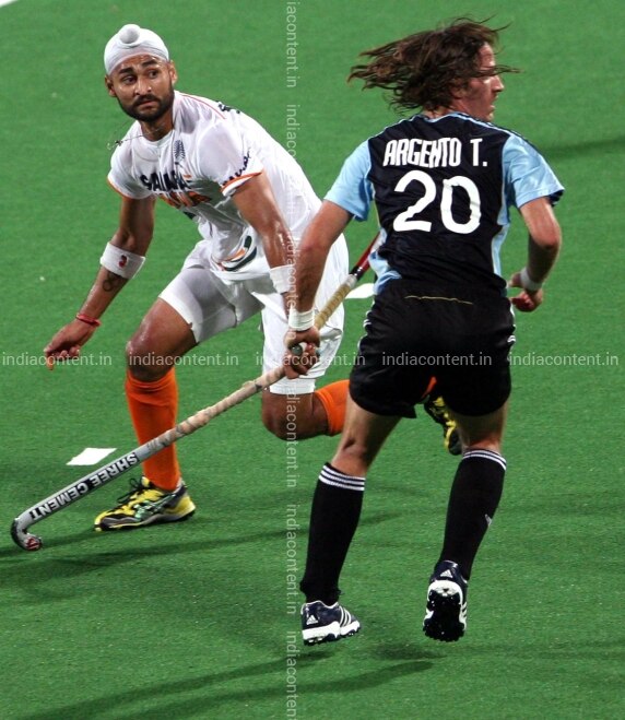NEW DELHI INDIA MARCH 12 ACTION FROM the India Vs Argentina Hockey World Cup MATCH AT the Major Dhyan Chand NATIONAL stadium IN NEW Delhi ON March 12 2010. India lost the MATCH 2-4 TO finish 8th IN the Hockey World Cup. Photo BY Qamar Sibtain India Today GROUP