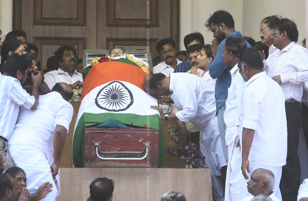 Thousands of people gathered at Rajaji hall in Chennai where TN chief minister J Jayalalithaa's body kept for paying last respect on Tuesday December 06 2016. Actor Rajinikanth is seen paying last respect to the chief minister. Photo by Jaison G