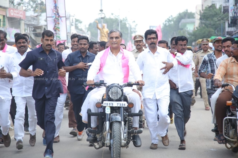 Buy Hyderabad Telangana Minister and TRS leader T Harish Rao during the partys motorcycle rally in Hyderabad on Sept 27 2018 Photo IANS Pictures, Images, Photos By IANS - News pictures