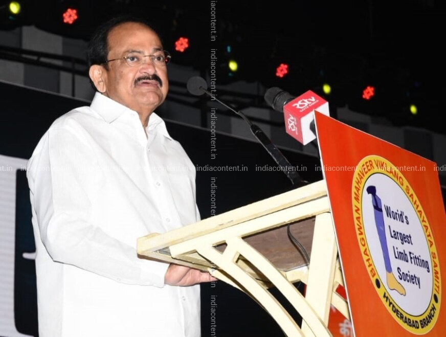 Hyderabad Vice President M. Venkaiah Naidu addresses at the cultural programme organised by the Bhagwan Mahaveer Viklang Sahayata Samiti BMVSS in Hyderabad on Jan 19 2019. Photo IANS PIB