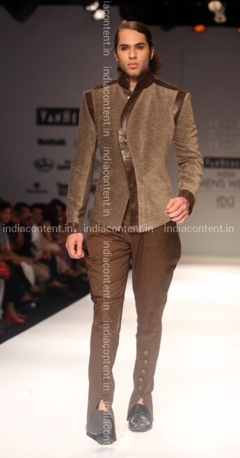 NEW DELHI INDIA AUGUST 29 A model walks the ramp for designers Abhishek and Rohit at the India Mens Week in New Delhi on August 29 2010. Photo by Kaushik Roy India Today Group