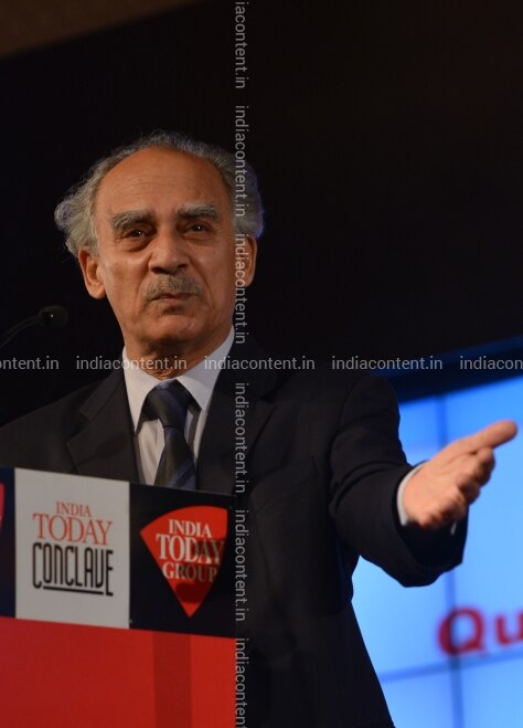 NEW DELHI INDIA - MARCH 15 Arun Shourie speaks during the India Today Conclave 2013 IN NEW Delhi. Photo BY K Asif India Today GROUP Arun Shourie