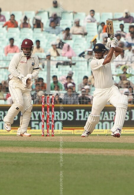 KOLKATA INDIA NOVEMBER 14 Indian cricketer Rahul Dravid plays a shot during the first day of the second Test cricket match between Indian and West Indies at The Eden Gardens in Kolkata on November 14 2011.Photo by Subir HalderIndia Today Group Rahul Dravid