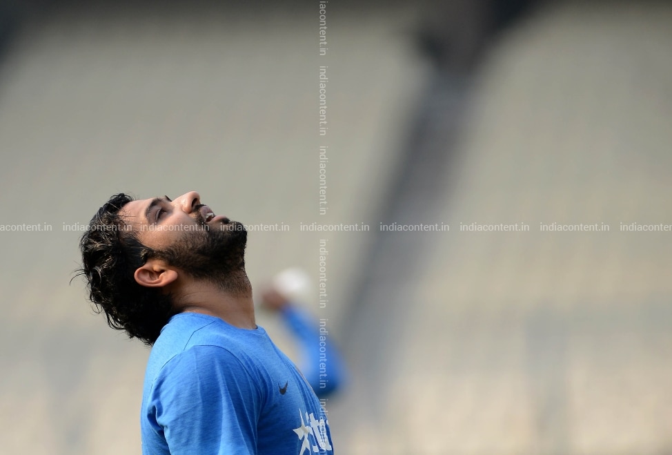 India's cricket captain Mahendra Singh Dhoni(R) and teammate Yuvraj Singh as they take part in a practice session at The Eden Gardens Cricket Stadium in Kolkata on March 9, 2016, during the World T20 cricket tournament