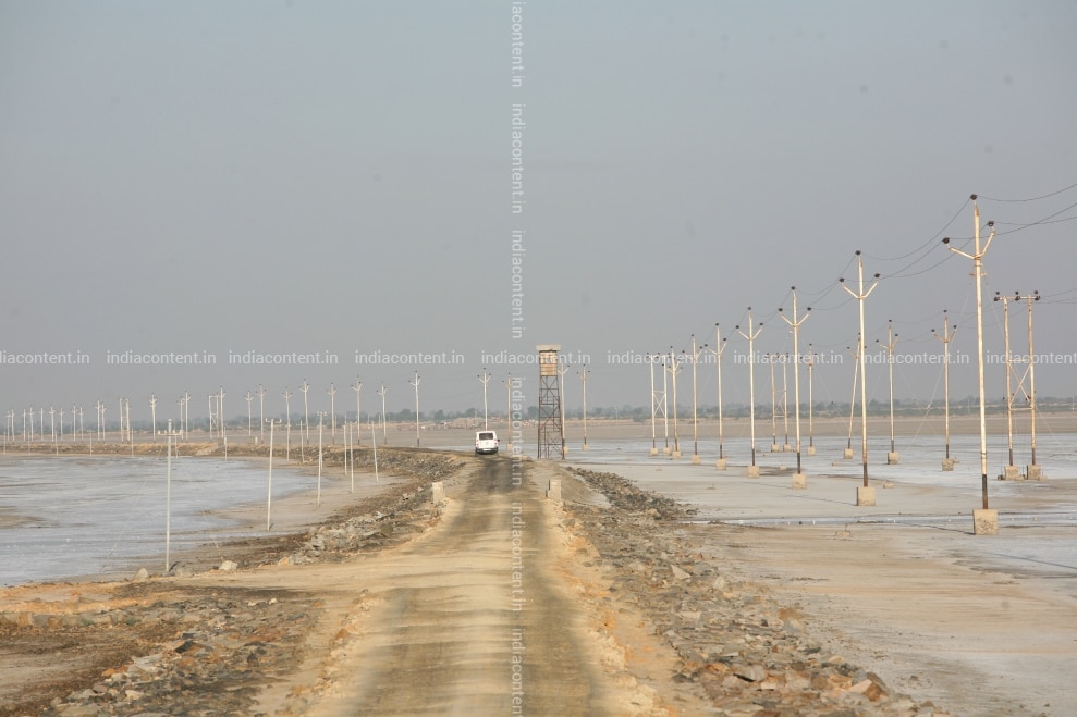 Aerial View of Indo Pakistan Border Post at Kutch and Banaskantha in Gujarat India Kutch Ranotsav Suigam Border Security Force BSF Camel