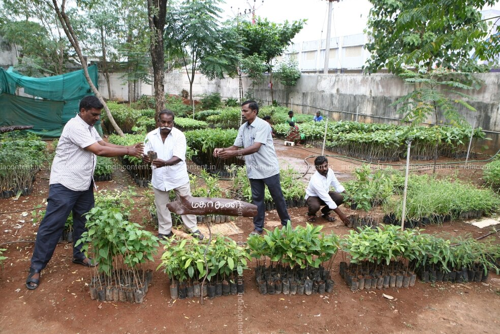 Isha project green hands voluteers at a plant nursery as part of the project at Nahar public school campus at Villupuram in Tamil Nadu on Tuesday, September 27, 2016. Photo by Jaison G