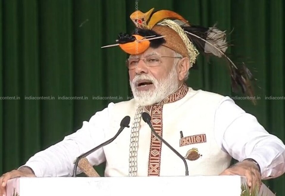 Itanagar Prime Minister Narendra Modi addresses at the inauguration of various development projects in Itanagar Arunachal Pradesh on Feb 9 2019. Photo IANS