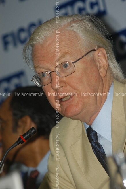 James A Mirrlees Nobel Laureate and Professor of Political Economy University of Cambridge addresses at FICCI Federation of Indian Chambers of Commerce and Industry in New Delhi India on 16th September 2005. Talking Sitting Potrait.
