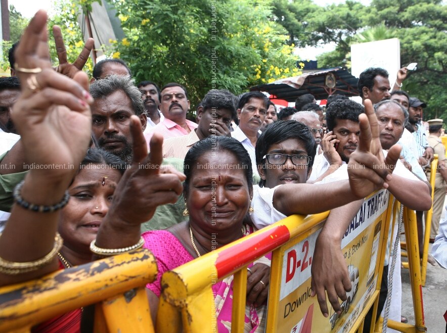 CHENNAI, TAMIL NADU-DECEMBER 05: Supporters of Tamil Nadu chief minister, J Jayalalithaa clicked outside the Apollo hospital during her critical condition in Chennai. Photo by Jaison G India Today Group