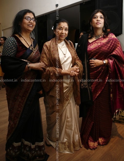 NEW DELHI INDIA JANUARY 14 Asha Bhonsle AND artist Jayashri Barman pose FOR the shutterbugs during the exhibition opening AT Lalit Kala Academy IN NEW Delhi ON Thursday January 14 2010. Photo BY Subir Halder India Today GROUP Asha BhonsleJayashri Barman