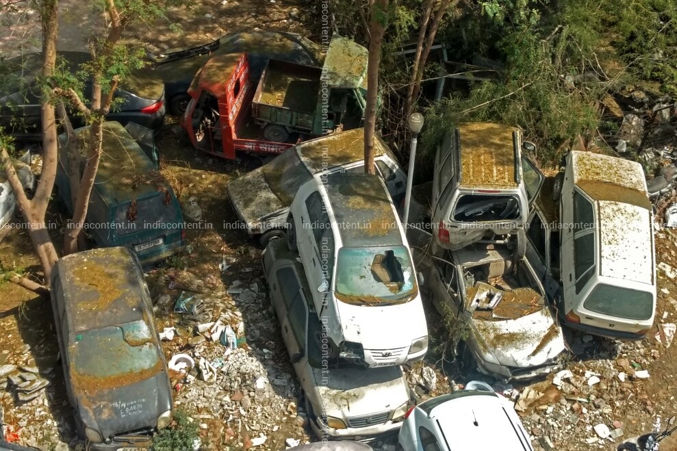 NEW DELHI INDIA MARCH 29 A view of the junk cars standing in front of Shakar Pur Police Station after the Supreme Court Order to remove them in New Delhi. Photo by K Asif India Today Group