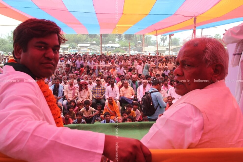 Buy Kahuara Vikassheel Insaan Party VIP President Mukesh Sahni and Bihar Former Chief Minister and HAM leader Jitan Ram Manjhi during an election campaign for the forthcoming Lok Sabha polls in Bihars Kahuara on April 14 2019 Photo IANS Pictures, Images, Photos By IANS - News pictures