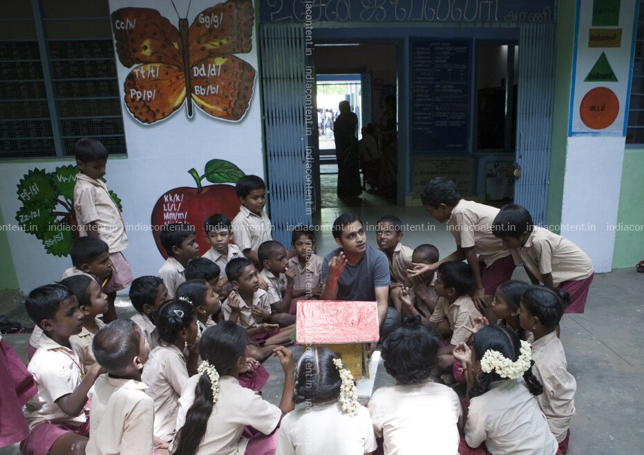 Karthee Vidya the founder and first volunteer of the NGO Team everest conducting a training session for students at the Cornation primary school Arni in Tamil Nadu on Wednesday June 10 2015. Photo By Jaison G