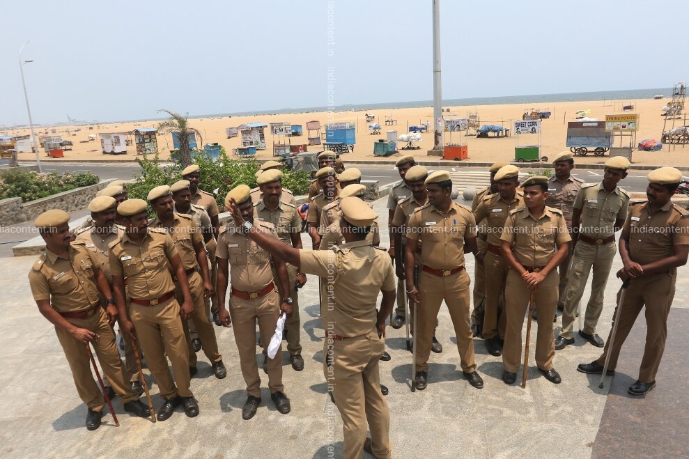 Police personnel being instructed on measures on security fearing Kavery water issue related protesters entering the beach. A scene at Marina beach on Monday April 02 2018. Photo by Jaison G