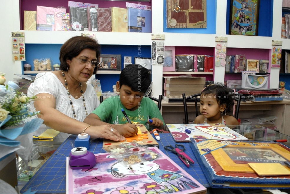 Kaya Kewalramani teaching her students in Mumbai Maharashtra India. for Simply Mumbai. Kaya Kewalramani wants all her students to know the joy and value of scrapactivity. Kreating Keepsakes Shop 021 Bayside Mall Tardeo in Maharashtra
