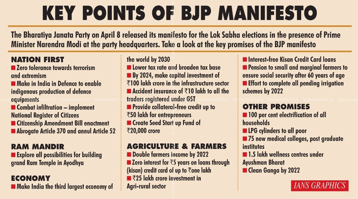 Keys Points of BJP Manifesto. IANS Infographics