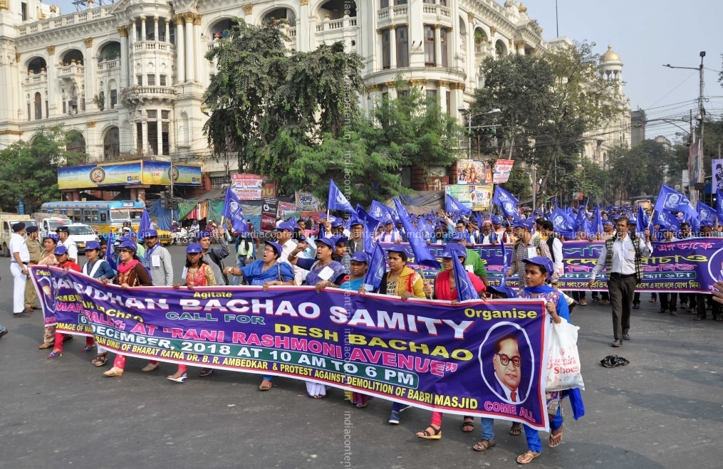 Kolkata Activists of 'Samvidhan Bachao Samiti' participate in a rally organised on Dalit icon B. R. Ambedkar's death anniversary in Kolkata on Dec 6 2018. Photo Kuntal Chakrabarty IANS