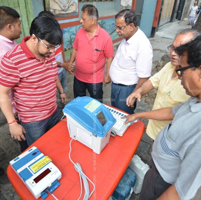 Buy Kolkata An election official demonstrates the usage of an Electronic Voting Machine EVM and Voter verified paper audit trail VVPAT to prospective voters ahead of 2019 Lok Sabha elections in Kolkata on March 19 2019 Photo IANS Pictures, Images, Photos By IANS - News pictures