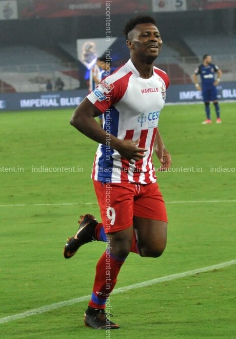 Kolkata ATK player Kalu Uche during an ISL 2018 match between ATK and Chennaiyin FC at Salt Lake Stadium in Kolkata on Oct 26 2018. Photo Kuntal Chakrabarty IANS