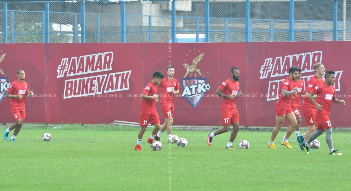 Kolkata ATK players during a practice session ahead of Indian Super League ISL 2018 match against Kerala Blasters Football Club KBFC in Kolkata on Sept 28 2018. Photo Kuntal Chakrabarty IANS