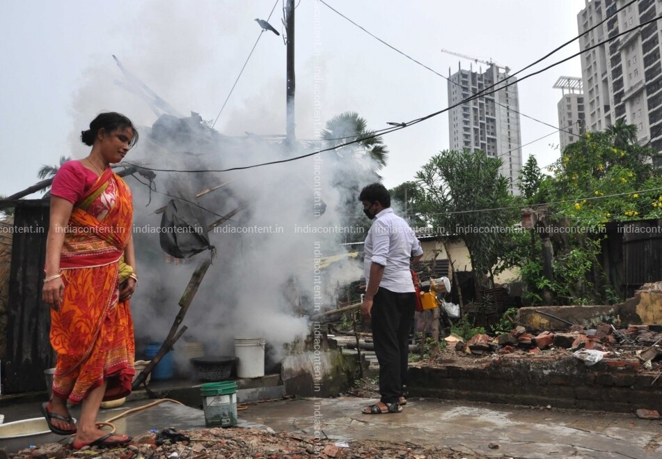Kolkata Bidhannagar Municipal Corporation BMC workers fumigate to kill mosquitoes at Salt Lake's Duttabad in Kolkata on Sept 3 3018. Photo Kuntal Chakrabarty IANS