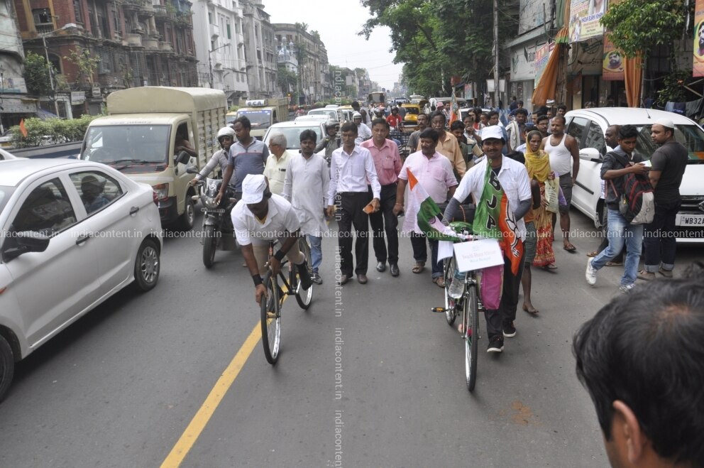 Buy Kolkata BJP worker Dibendunath Bera embarks on a nation wide journey as a part of Swachch Bharat Abhiyan on a cycle without chain brakes or gear from Kolkata on June 22 2018 Photo IANS Pictures, Images, Photos By IANS - Others pictures