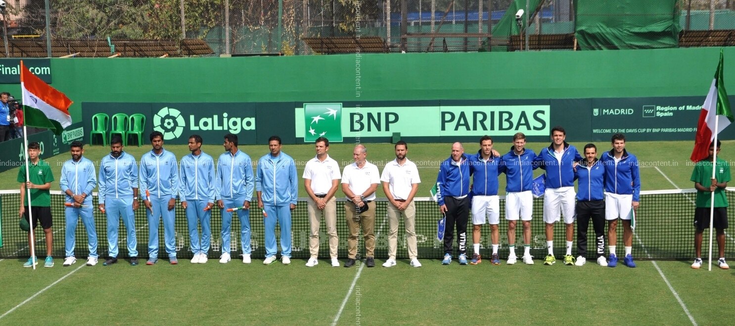 Kolkata Indian and Italian tennis players during a Davis Cup World Group rubber in Kolkata on Feb 1 2019. Photo Kuntal Chakrabarty IANS