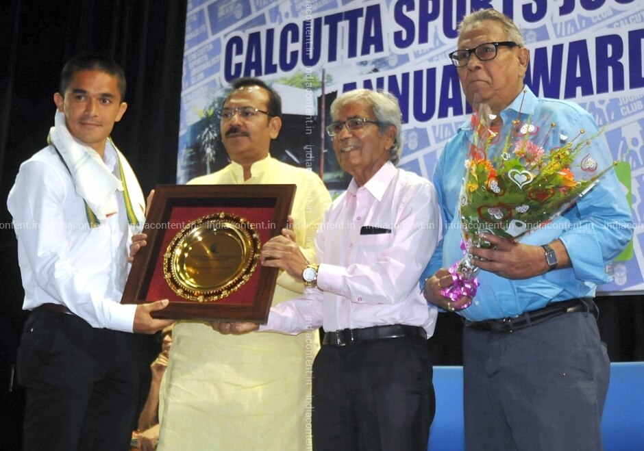 Kolkata Indian football captain Sunil Chhetri received Best Sportsperson of The Country award during Calcutta Sports Journalist's Club annual award ceremony 2018 in Kolkata on Aug 16 2018. Photo IANS