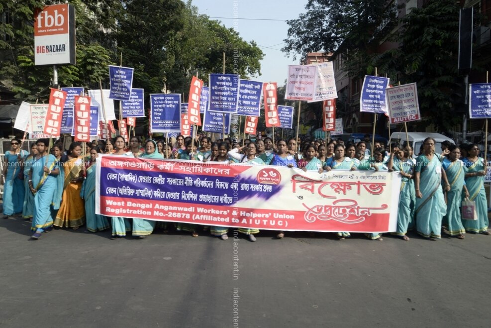 Buy Kolkata Integrated Child Development Services ICDS workers stage a protest against the West Bengal government in Kolkata on Nov 16 2018 Photo IANS Pictures, Images, Photos By IANS - Others pictures