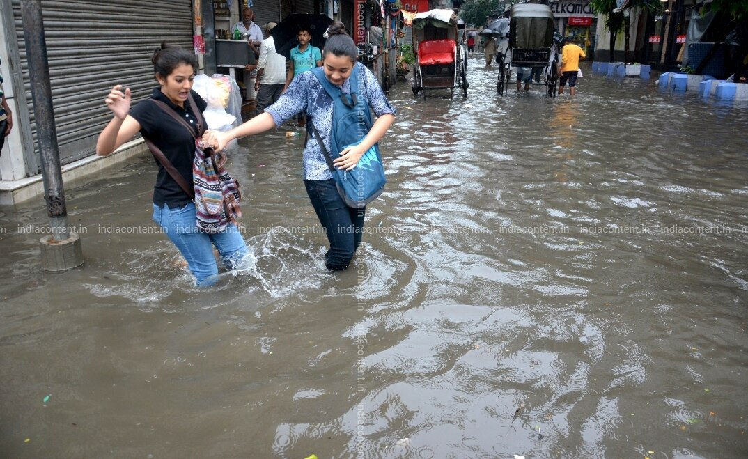 Buy Kolkata People wade through water logged streets of Kolkata after heavy rains on Aug 5 2018 Photo IANS Pictures, Images, Photos By IANS - Others pictures