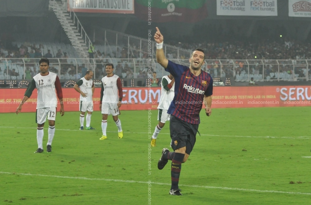 Kolkata Players in action during an exhibition match between FC Barcelona and Mohun Bagan A.C. in Kolkata on Sept 28 2018. Photo Kuntal Chakrabarty IANS