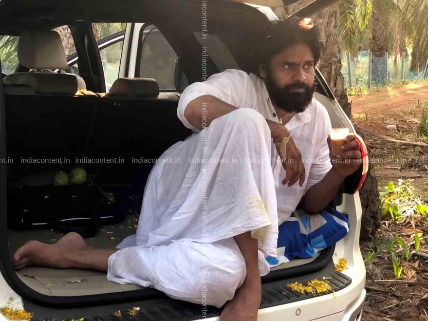 Krishna Jana Sena Party President Pawan Kalyan seen relaxing in a booth space during 2019 Lok Sabha election campaign in Andhra Pradesh's Krishna district on March 24 2019. Photo IANS