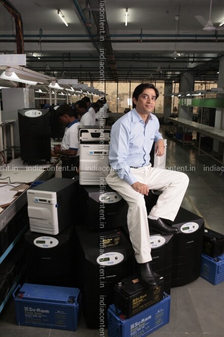 Kunwer Sachdev Chairman and Managing Director of Su Kam Power Systems limited reclines on a throne of inverters and batteries produced at his company in Gurgaon Haryana India. Kunwer Sachdev 42 Chairman of Su Kam Power Systems has a current turnover of Rs 430 crore. He started a business manufacturing cable equipment but with no technical skills it was never going to work. Undeterred he switched focus sensing a chance to improvise on the locally purchased inverter he had installed at home which could never keep pace with long and frequent power cuts. entrepreneurship