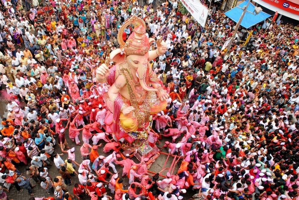 Lakhs of devotees carry an idol of Lord Ganesha during a procession for immersing it in the Arabian Sea in Mumbai Maharashtra Festival Religion Lifestyle Celebration Ganesh Chaturthi