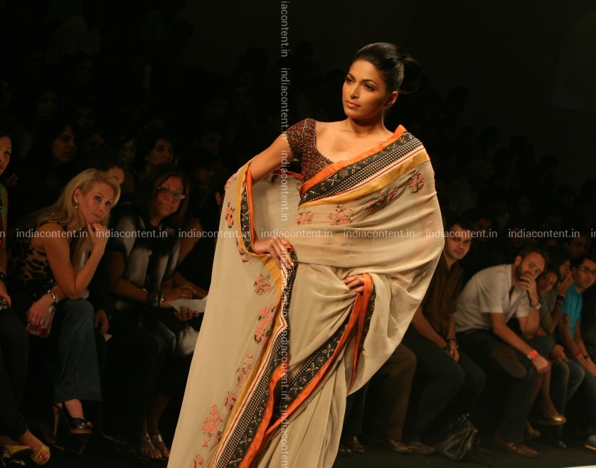 A Model is walking on the ramp with Fashion Designer Vineet Bahl outfit at the Lakme Fashion Week 2008 in Mumbai Maharashtra India LFW LIFW
