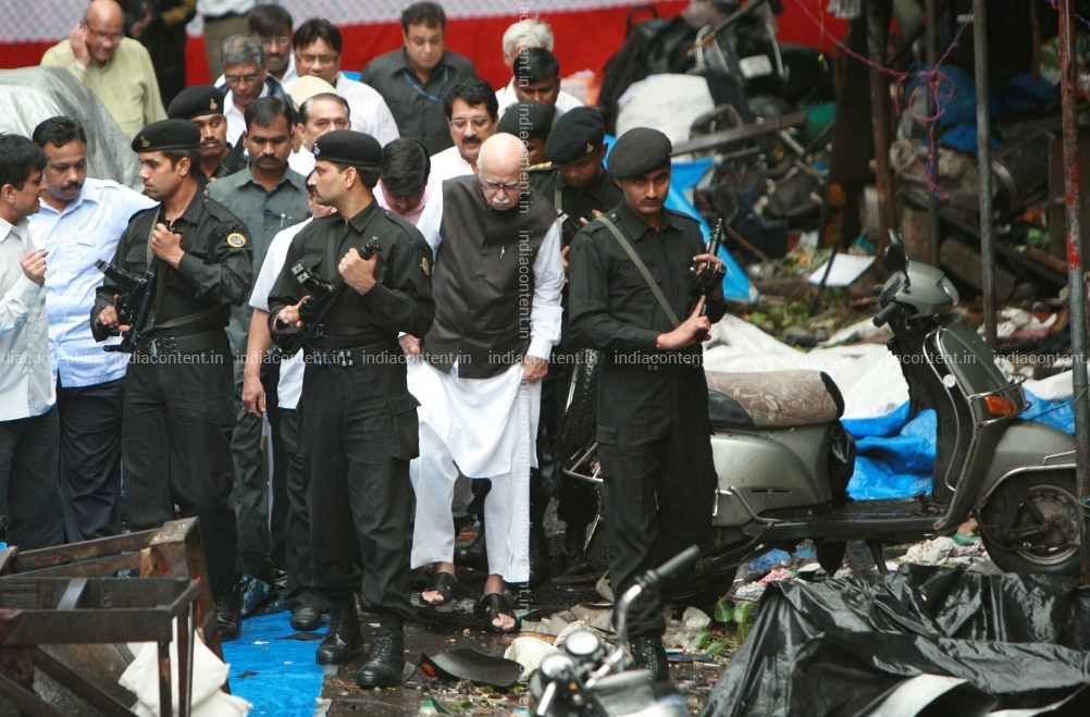 Lal Krishna Advani Senior BJP leader visits blast site at opera house in Mumbai Maharashtra India