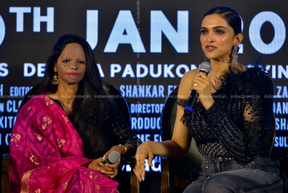 MUMBAI MAHARASHTRA JANUARY 03 Laxmi Agarwal and Deepika Padukone clicked during the title track launch of upcoming movie Chhapaak in Mumbai. Photo by Milind Shelte India Today Group Laxmi Agarwal Deepika Padukone