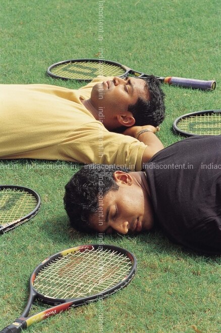 Leander Paes and Mahesh Bhupathi Tennis Champions taking rest on grass Sports Together
