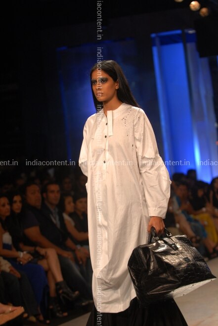 MUMBAI INDIA AUGUST 07 A model walks the ramp in a creation by designer Kallol Datta on the Grand Finale of the Lakme Fashion Week LFW WinterFestive 2012 at Grand Hyatt in Mumbai.Photo by Mandar Deodhar India Today Group