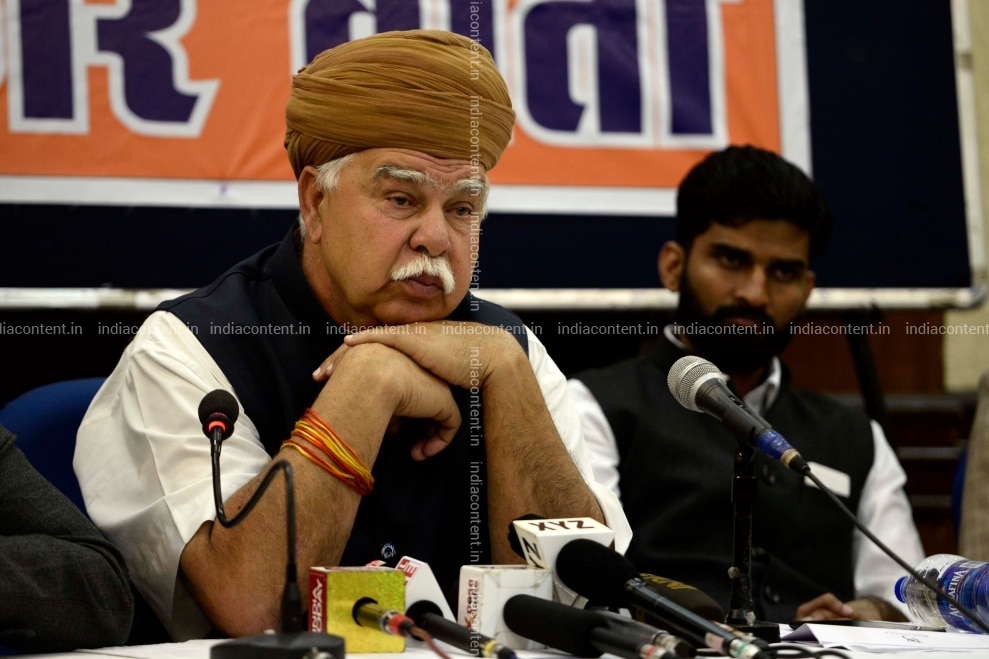 Founder of the Rajputana Karni Sena Lokendra Singh Kalvi address a press conference in New Delhi India on Tuesday 14 2017. Photo by M Zhazo